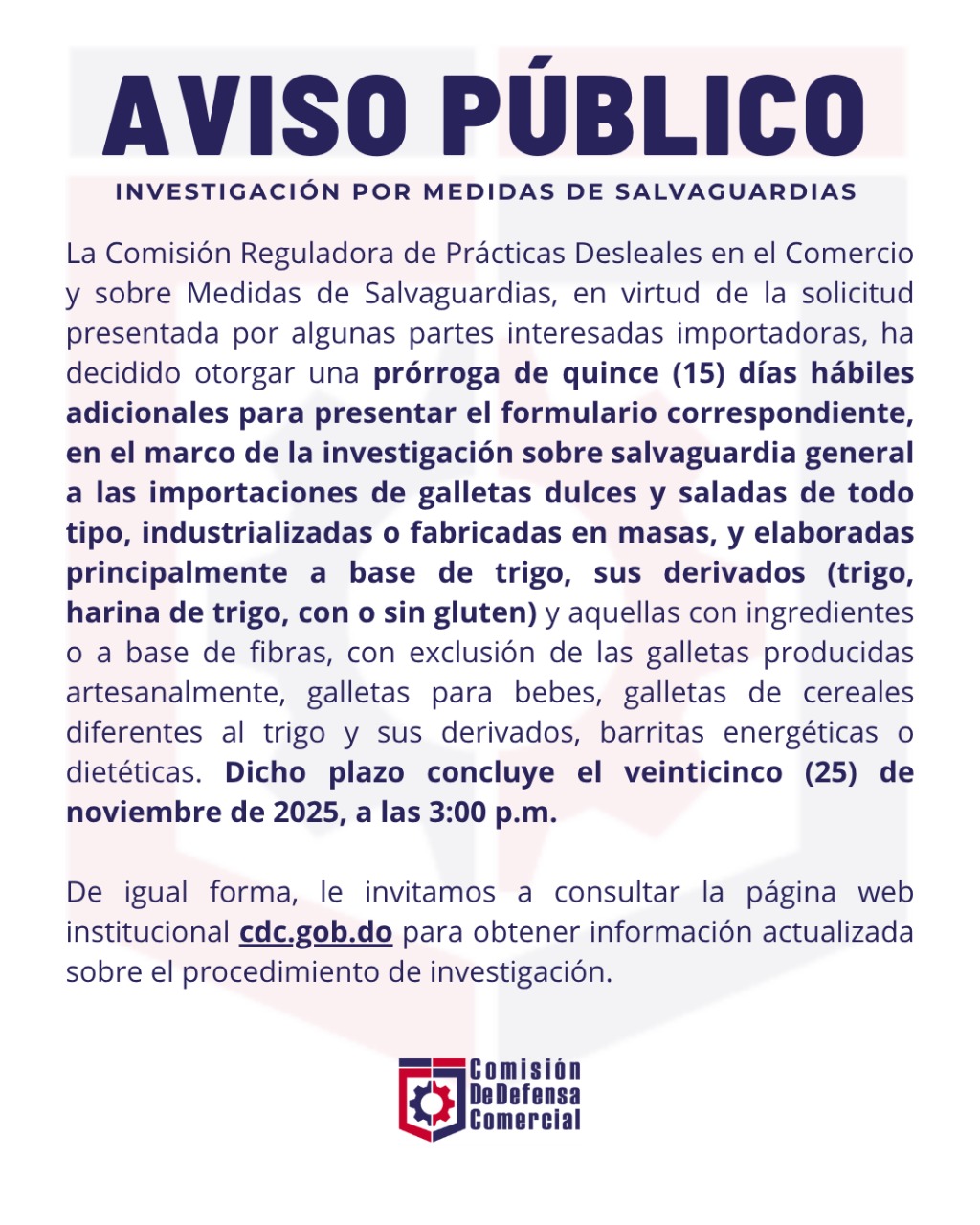 3 – Aviso público Resolución Núm CDC-RD-SG-2025 Inicio Investigación Salvaguardias Galletas Dulces y Saladas